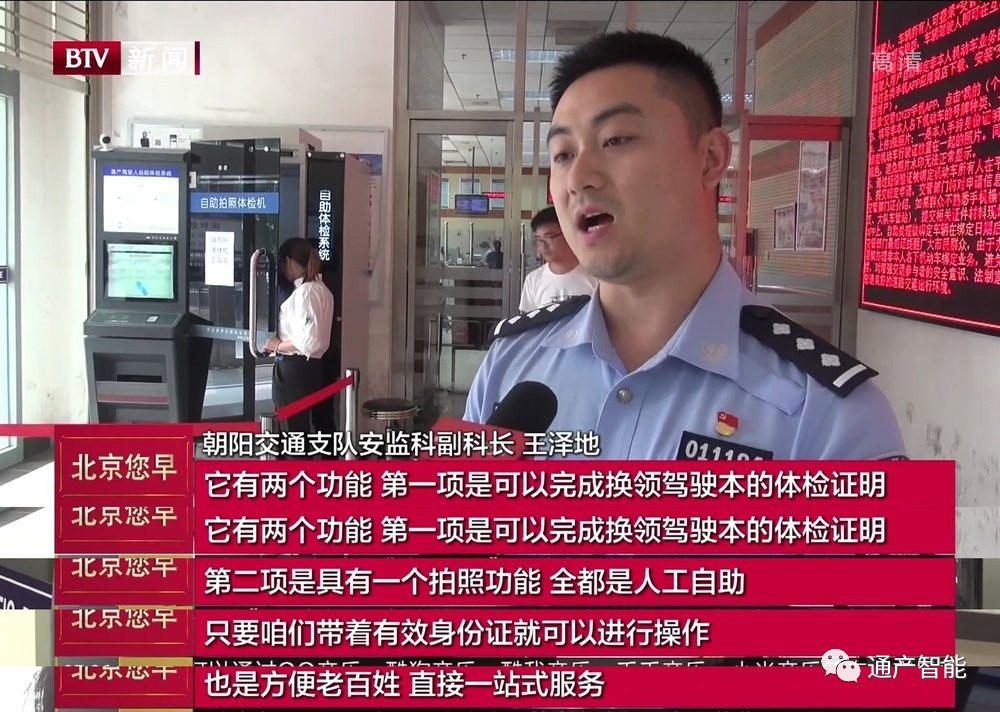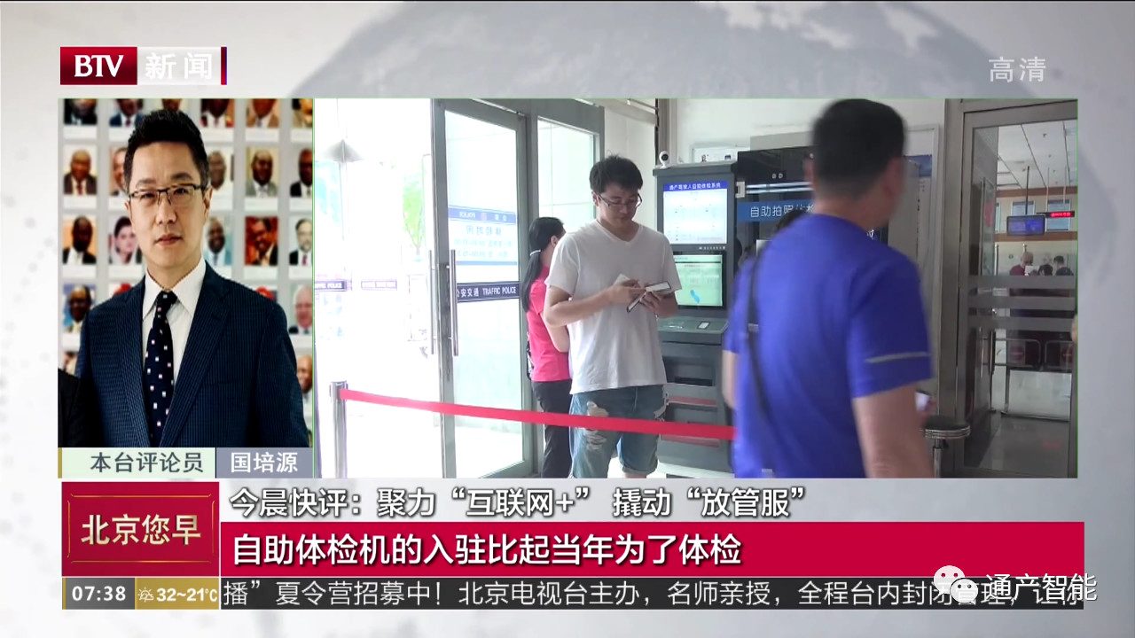 今天,北京卫视“北京您早”栏目长时介绍了投放在朝阳交通支队车管业务大厅的通产智能自助体检机。