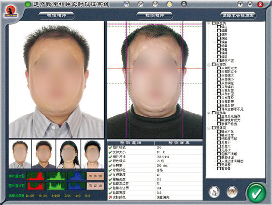 《数字照片实时认证系统》是一套对二代证、护照等制证用数字相片进行技术检测的网络信息化系统,由采集客户端软件、检测客户端软件及服务器软件组成。其中采集客户端软件安装在派出所,主要功能是上传照片接收检测结果;检测客户端软件与服务器软件一般设置在制证中心,完成检测认证工作。