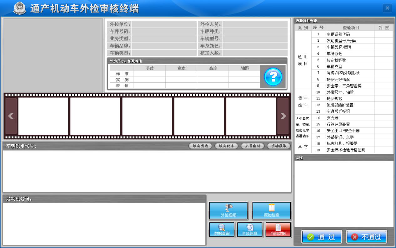 《通产机动车安全技术检测集中监管系统》是集网络、软件、电子、控制机械为一体的信息化集成系统。采用了计算机软件设计、控制技术、图像处理技术,结合机械、电子等多种切实可行、有效的技术手段,实现了对机动车安全技术检测过程的全方位监管。