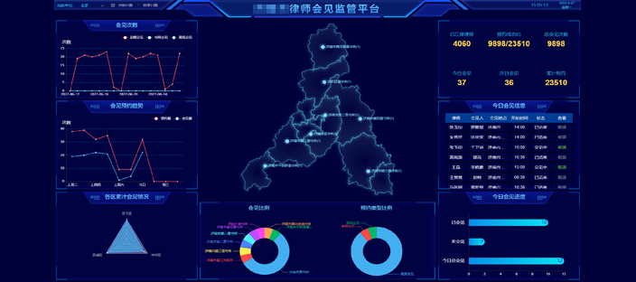律师远程视频会见系统是通过专用网络,采用专用设备进行音视频双向实时传输的方法,实现律师在监所外与监所内的在押人员进行远程视频会见的系统解决方案。 设备分为监所端设备及律师端设备,监所端设备部署在监所内,律师端设备可部署在公安机关、检察机关、律师协会、法律援助中心等地点,突破了监所内会见的局限性,减少监所资源占用,方便律师与在押人员交流,提高工作效率,减少监所工作压力,保障在押人员的合法权益。系统由“会见预约系统”、“视频会见系统”及“会见管理系统”等多个子系统组成。