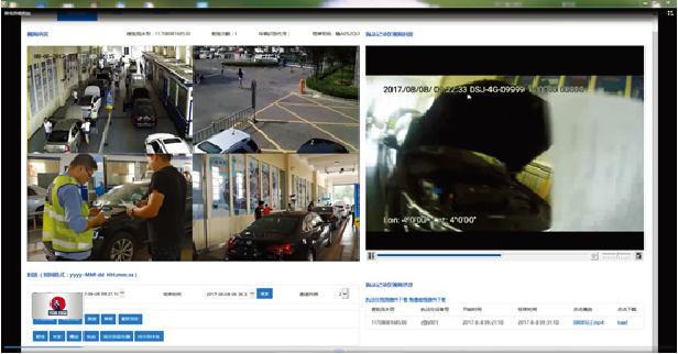 音视频系统是查验监管系统的重要组成部分。它是对查验系统进行记录的一套视频监管系统。通过与查验系统关联对接、获取查验过程的开始和结束时间、查验车辆的部分信息。通过流水号、次数与查验时间获取网络硬盘录像机(NVR)上的视频,供监管系统审核查看;同时也可将抓拍图片、视频下载到本地服务器,以备后续查看。除NVR摄像头外,还包括执法记录仪信息PDA通过蓝牙与执法记录仪进行连接,发送开始、结束信号及相关信息,每天结束后,执法记录仪上传当天视频系统同样可根据流水号、次数及时间查看执法记录仪录像。